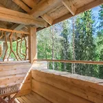 Equipada con un escritorio, Basecamp Oulanka Villa se abre a las vistas al jardín. Con una ducha a ras de suelo, un inodoro separado y una bañera, el cuarto de baño también dispone de secador de pelo y toallas.